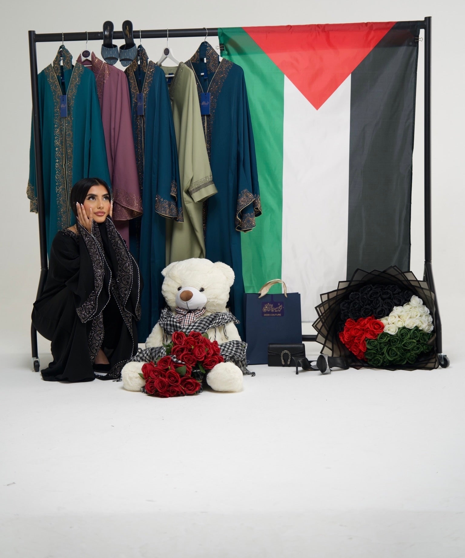 Make a statement with our Deep Turquoise Embellished Abaya Set, a bold yet graceful 3-piece ensemble for modern modes...